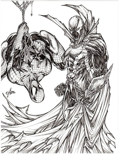Spider Man Spawn Original Black White Sketch Drawing By Calvin Henio Ebay